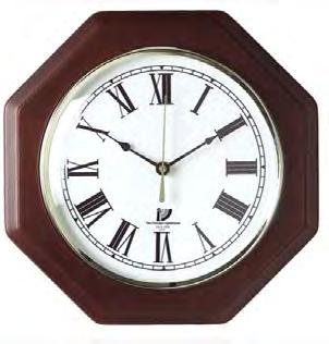 This elegant mahogany octagon hardwood clock features a white dial with Roman numerals and glass crystal with bezel. Brandable with company logos and artwork.