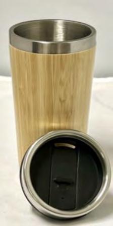 You won't want to leave home without your 13.5 oz. Travel Mug made from 100% sustainable bamboo. The mug has double-walled insulation that keeps drinks cold up to 8 hours, and hot up to 4 hours. Finishings are made from stainless steel and recycled plastic.