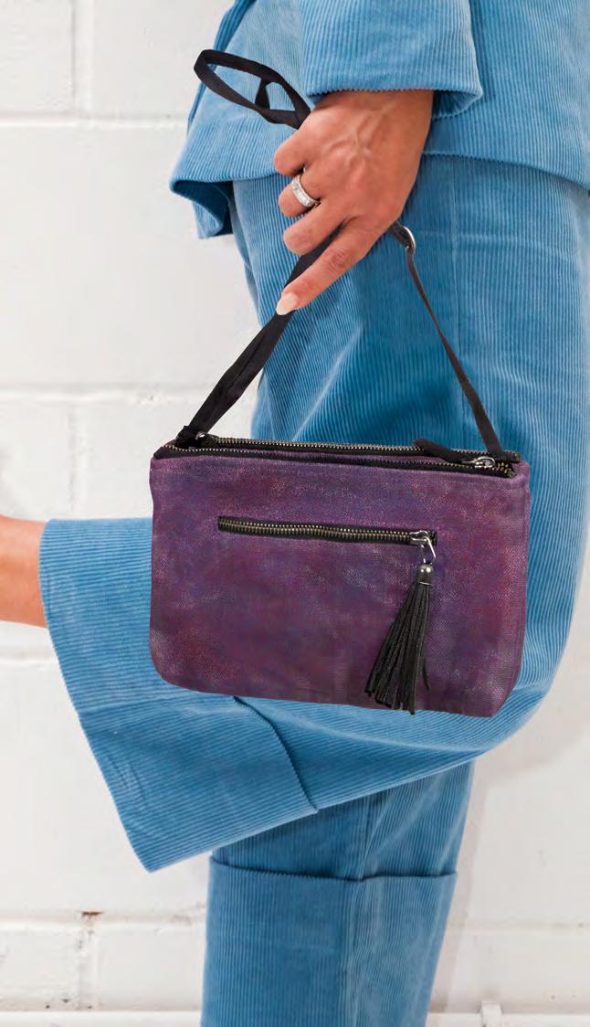 If you are looking to invest in a new bag this season, treat yourself to the Nearby crossbody bag. Stylish, easy to wear, and easy to carry. The Nearby has more room than the Hip bag and features two zippered compartments, one open compartment in the middle, and a bonus zip pocket on the outside. Handmade from repurposed industrial net.
