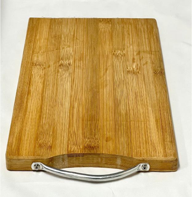 Our 100% sustainable bamboo Cutting Board is sturdy and knife-friendly, and adds a chic flourish to any kitchen. Use for food prep, cutting, or even as a serving piece. Easy to clean and store, and a great gift anyone who loves to host. The handles are stainless steel. These cutting boards make an impact.
