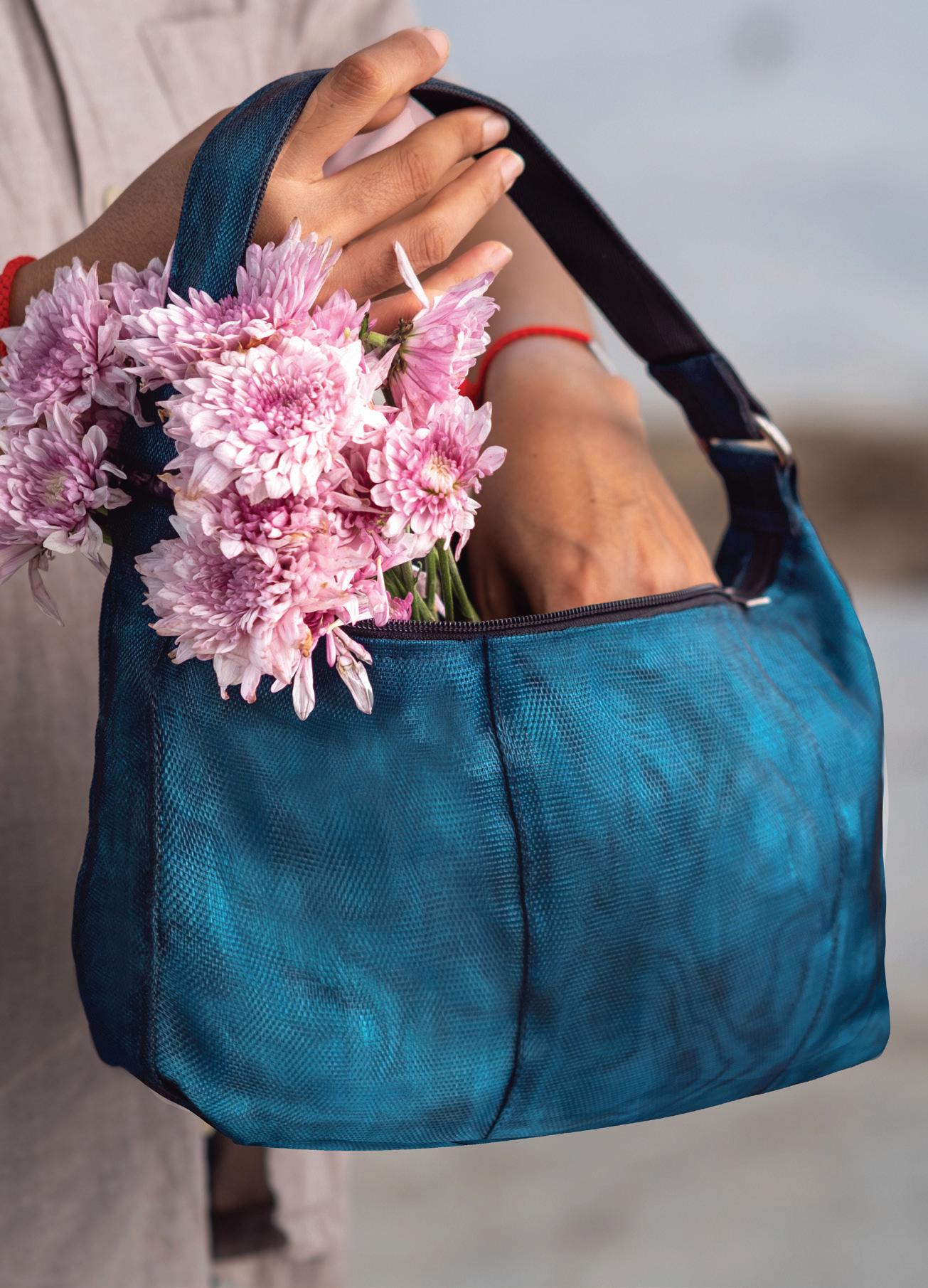 The collection is made by upcycling difficult-to-recycle and non-biodegradable waste, such as plastic bags, snack wrappers, vinyl banners, balloons, and old audio/video cassette tapes. Each item produced saves dozens of waste bags and wrappers from ending up as forever trash.