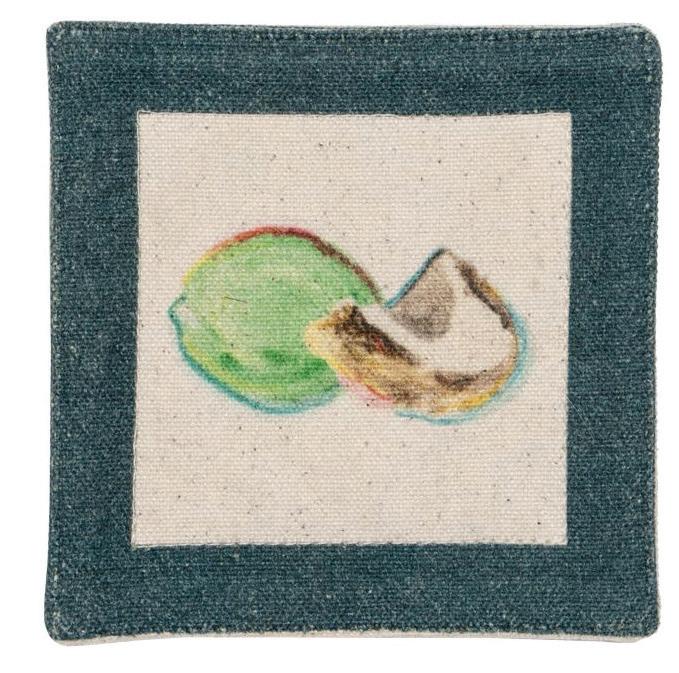 100% organic fair trade cotton canvas trivets constructed by artisans at a social enterprise in India. The artwork was created in our Chicago studio with watercolor and oil pastels. Measures 8” x 8”.