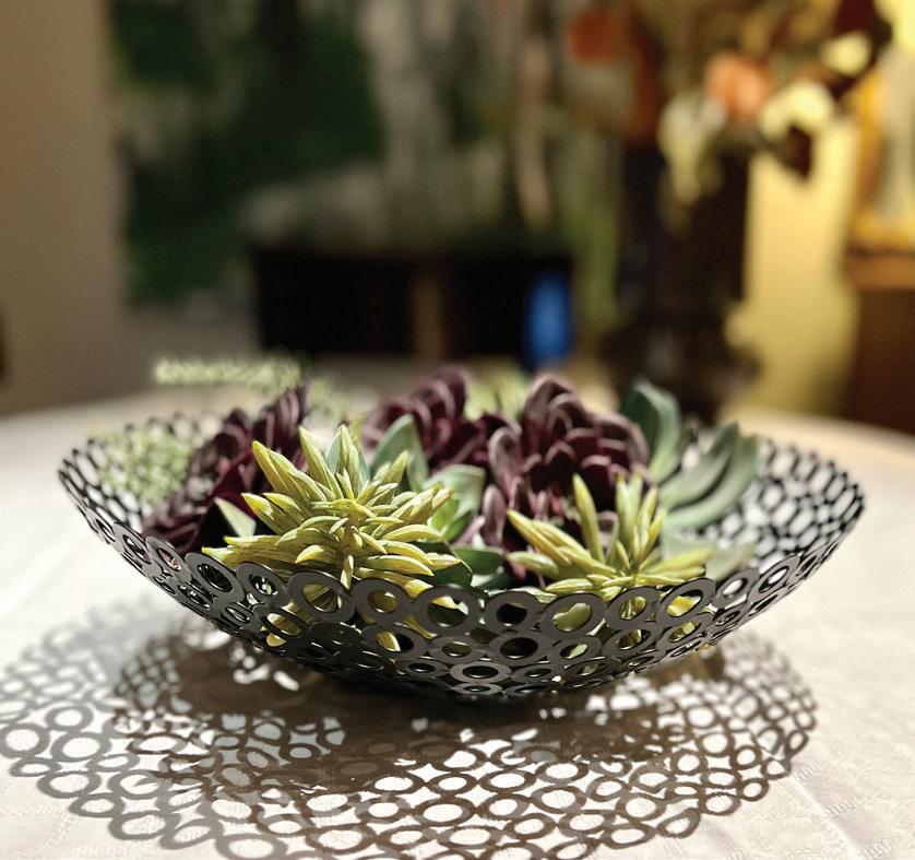 Our bowls are made from repurposed bicycle spokes and iron washers in India by artisans skilled in cutting & welding. Completely customizable.