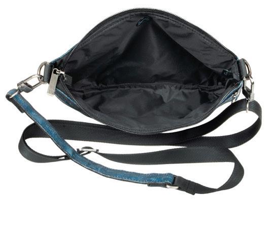 The Jolly crossbody is a stylish and functional crossbody. It has a zipper closure to the main compartment, an adjustable, removable shoulder strap, and an outside zippered pocket. Inside there is an internal snaphook for keys, two internal open pockets, and one zippered pocket. Handmade from repurposed industrial net.