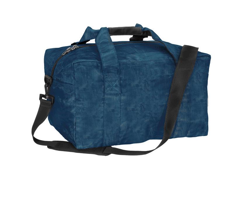 The Trek has it all - tons of space, a sophisticated look, and room for everything. Going away for a long weekend or need a bag that can go from the office to the gym? This bag will help you pack it all in style with two open pockets on the outside, a zippered top, and four open pockets on the inside. Handmade from repurposed industrial net and brandable with company logos and art.