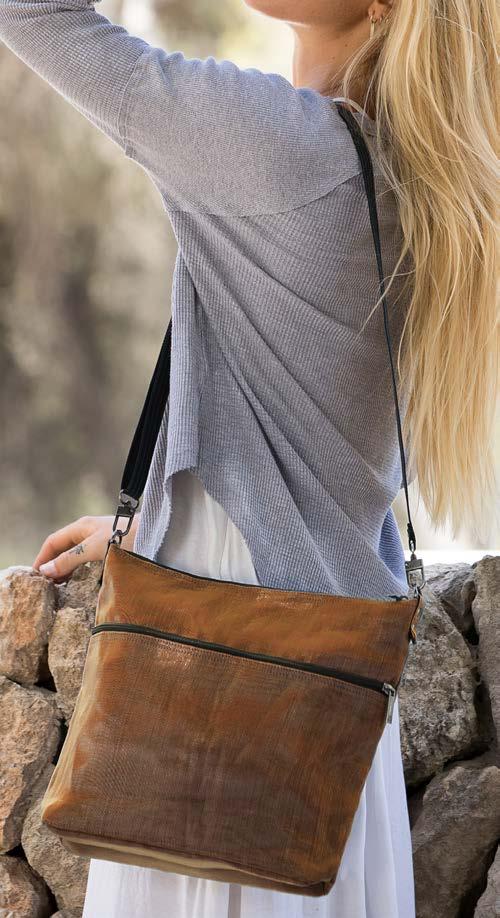 The Jolly Crossbody is a stylish and functional crossbody. It has a zipper closure to main compartment; an adjustable, removable shoulder strap; and an outside zippered pocket. Inside there’s an internal snaphook for keys, two internal open pockets and one zippered pocket.