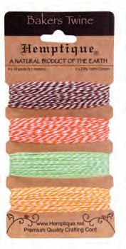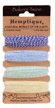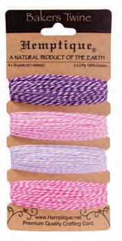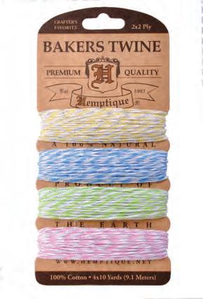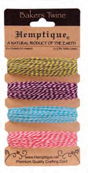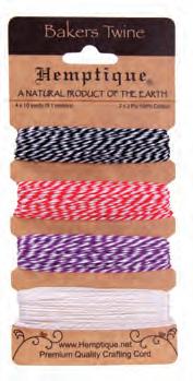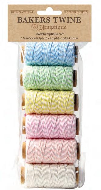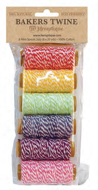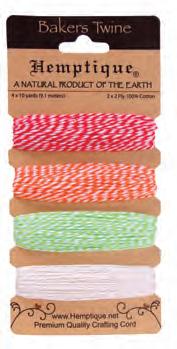 Enhance your creative projects with our assortment of cotton bakers twine. This includes a variety of color combinations, metallics, and package options.