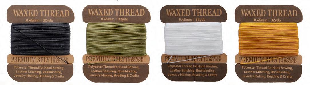 Linen Thread resembles cotton but is more durable and long-lasting. It is a popular choice for leather stitching, hand sewing, bookbinding, lacing, and other applications.