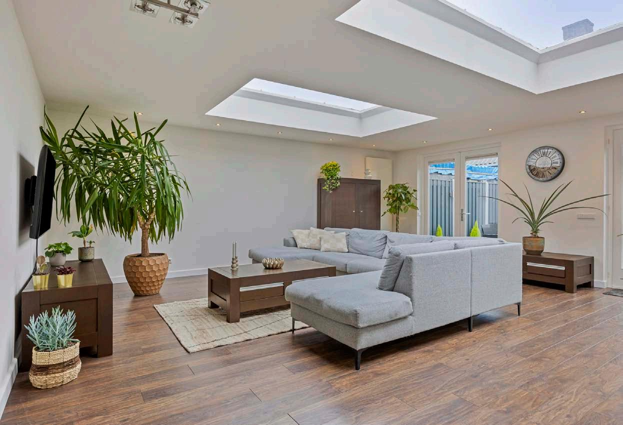 Stap binnen in deze prachtige woning en laat je verrassen door de overvloed aan licht en ruimte. De royale woonkamer is een oase van rust en biedt met zijn grote dakramen een schitterend uitzicht op de groene buitenwereld.