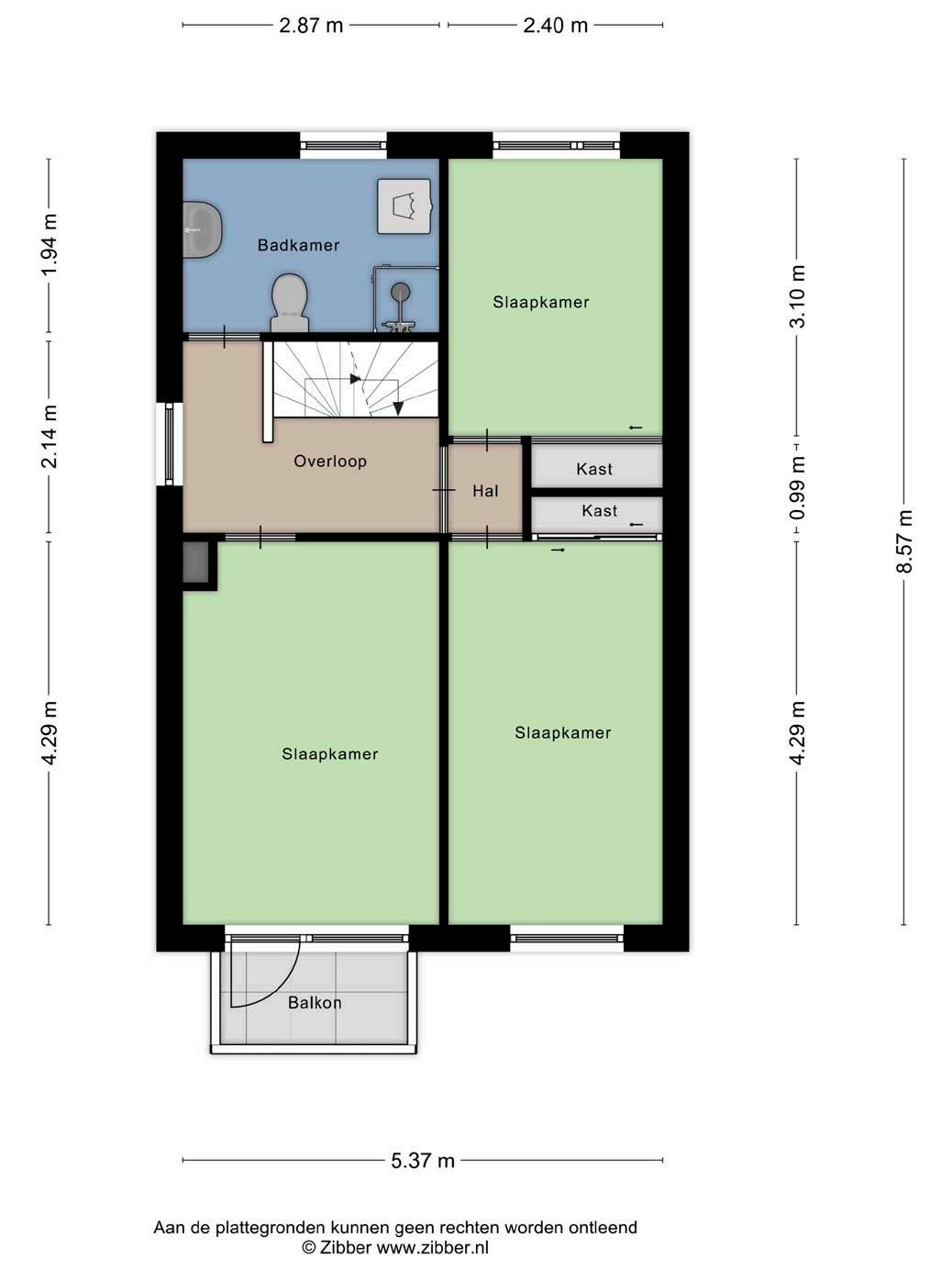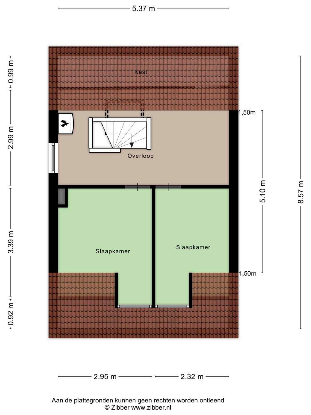 Op de tweede verdieping bevinden zich twee slaapkamers. De tweede verdieping is te bereiken door middel van een vaste trap. De twee slaapkamers kunnen ook flexibel worden ingericht als werkkamer of hobbyruimte.
