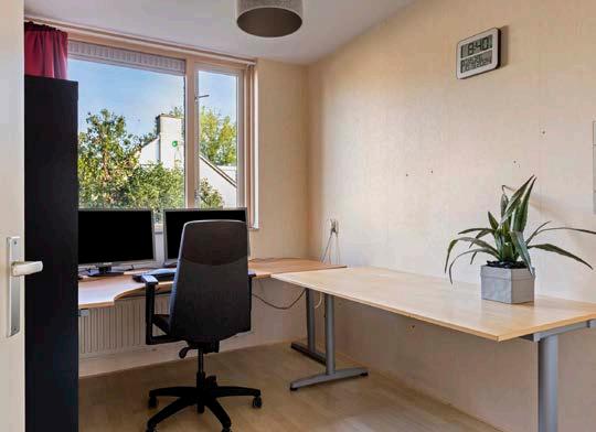 Het huis heeft naast de grote woonkamer vijf slaapkamers, dus voldoende ruimte voor het gezin, voor (thuis-)werkkamers of hobbyruimte. En dan is er ook nog een garage bij sommige buren verbouwd is tot kantoor of werkruimte. (Want wie zet tegenwoordig zijn auto nog in de garage...).