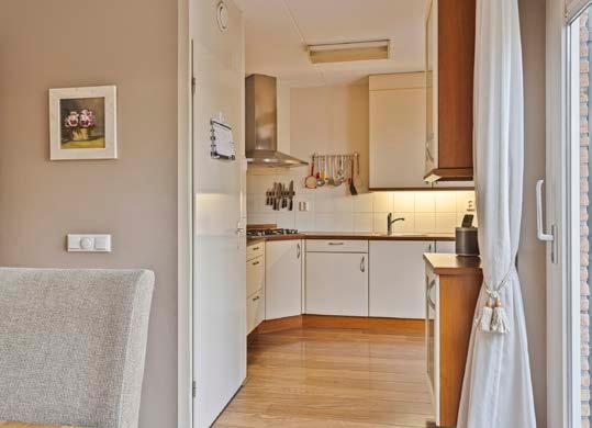 De keuken is van alle gemakken voorzien en biedt niet alleen veel opbergruimte, maar ook een efficiënt werkoppervlak. Door de inbouwapparatuur is koken hier een plezier, of je nu een snelle maaltijd bereidt of een uitgebreid diner. Grenzend aan de keuken bevindt zich een bijkeuken, ideaal voor extra opslag of als wasruimte.