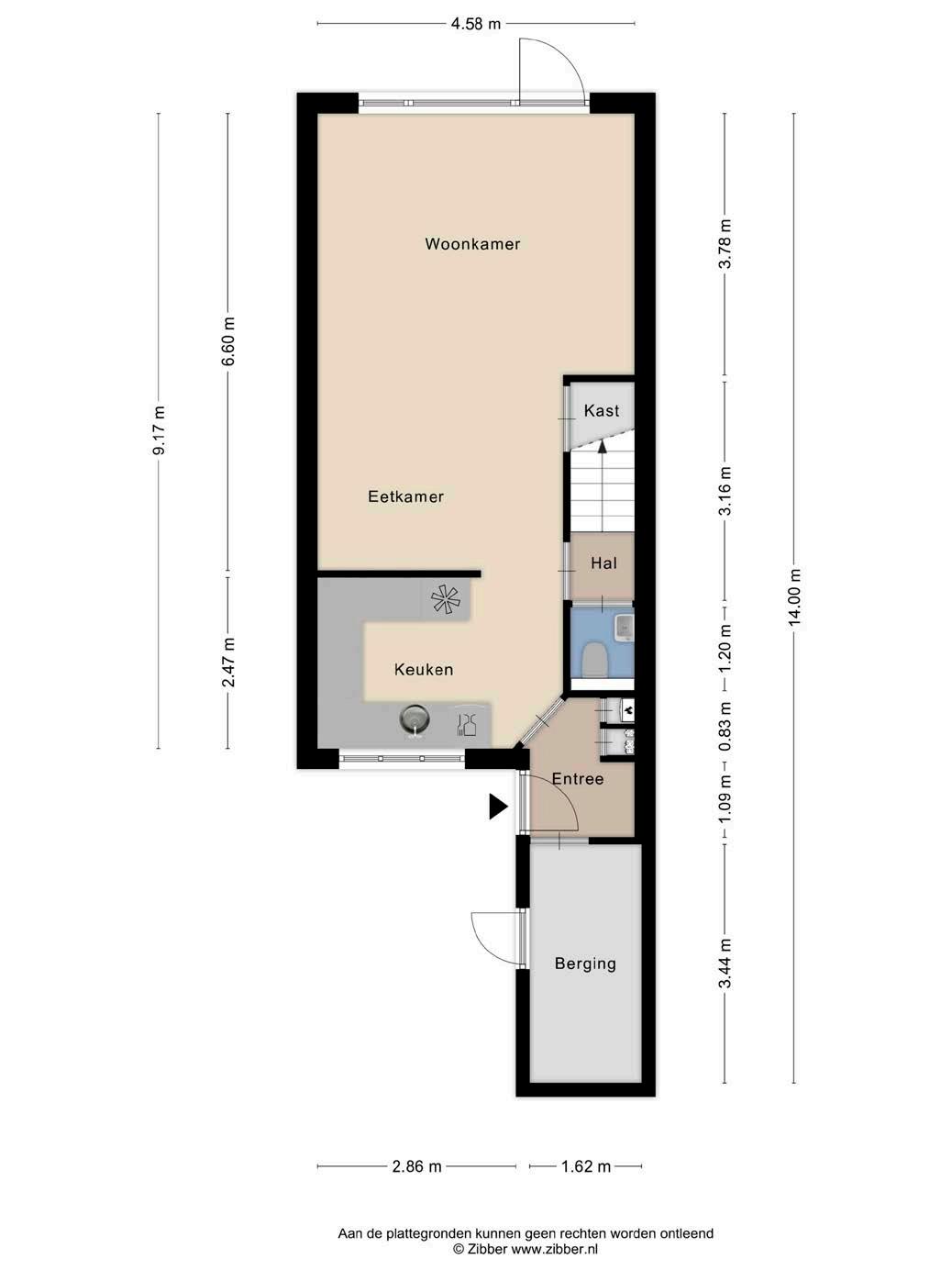 Bij binnenkomst in de hal tref je de meterkast en heb je toegang tot een handige inpandige berging. Deze berging biedt volop ruimte voor het opbergen van fietsen, gereedschap of seizoensgebonden items, waardoor je huis altijd netjes en georganiseerd blijft.