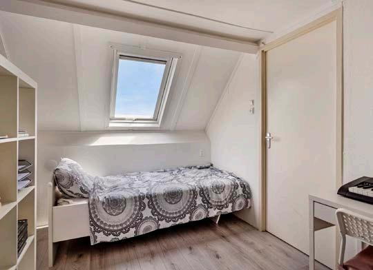 De tweede verdieping biedt nog meer ruimte en mogelijkheden. De voorzolder is voorzien van een mechanische ventilatie-unit en aansluitmogelijkheden voor wasapparatuur, wat het een praktische ruimte maakt voor huishoudelijke taken. Daarnaast bevindt zich hier de vierde slaapkamer van circa 10 m², afgewerkt met een dakraam en laminaatvloer.