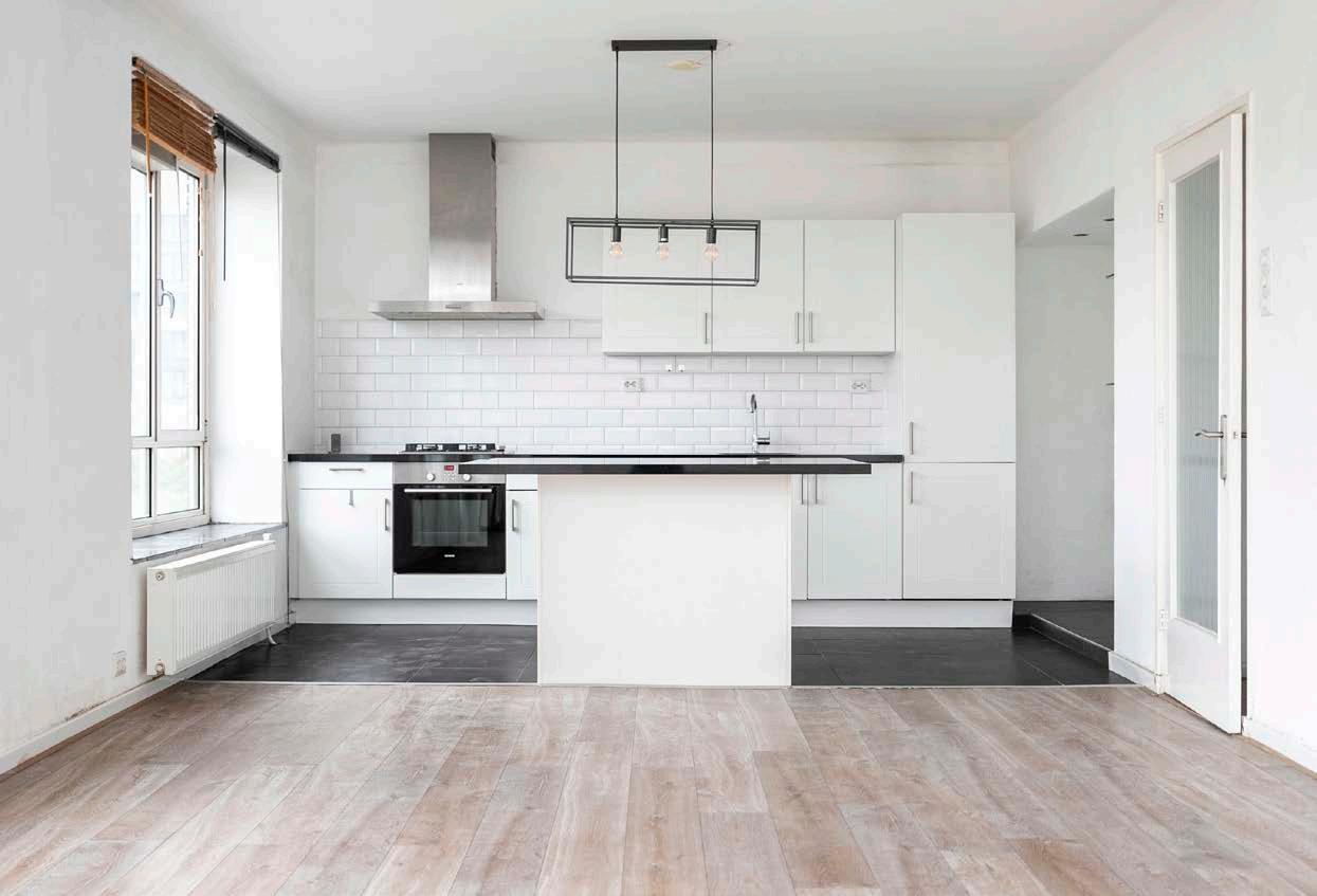 In deze ruime woonkamer heb je veel opties om deze zo functioneel mogelijk in te richten. De toegang tot de open keuken en het balkon biedt een ruimtelijk gevoel in de woning.