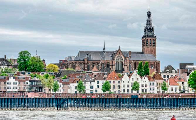 De vestingstad Nijmegen, schitterend gelegen aan de rivier de Waal, ligt tussen heuvels en bossen. In de stad zijn nog veel kenmerken van de Romeinse tijd terug te vinden, zoals Romeinse thermen en tempels. Aan het eind van de 19e eeuw ontwikkelde Nijmegen zich als een prachtige woonstad. De brede singels en statige huizen van de St.-Annastraat, de Van Schaeck Mathonsingel en de Oranjesingel stralen nog steeds de schoonheid en de grandeur uit van de 19e eeuw.