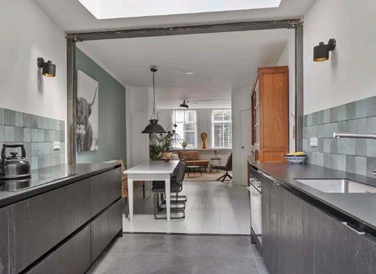 Vanaf de keuken kun je de openslaande deuren openzetten richting de gezellige tuin.