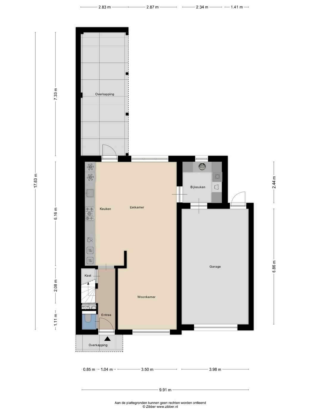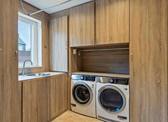 Een moderne open keuken die uitnodigt tot culinaire experimenten. Een praktische bijkeuken met een ingang naar de royale garage.