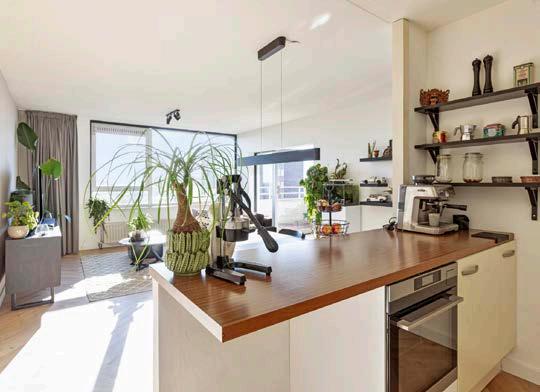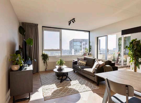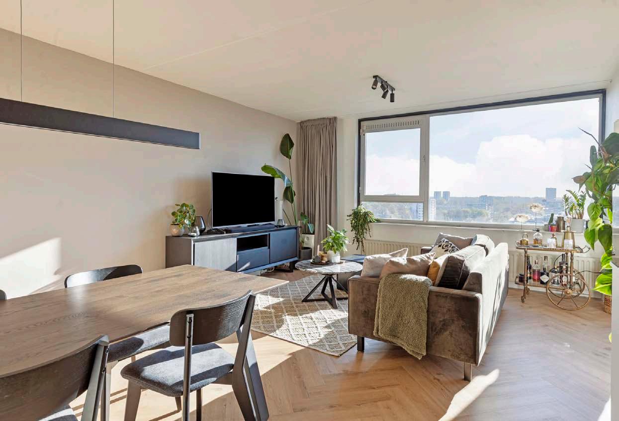 De woonkamer is ruim opgezet en valt direct op door de warme en moderne afwerking. In combinatie met de grote raampartijen zorgt dit voor een prettige sfeer en veel lichtinval. Vanuit de woonkamer heb je bovendien een vrij en weids uitzicht over Eindhoven, wat zorgt voor extra wooncomfort. Er is voldoende ruimte voor zowel een zitgedeelte als een eettafel.