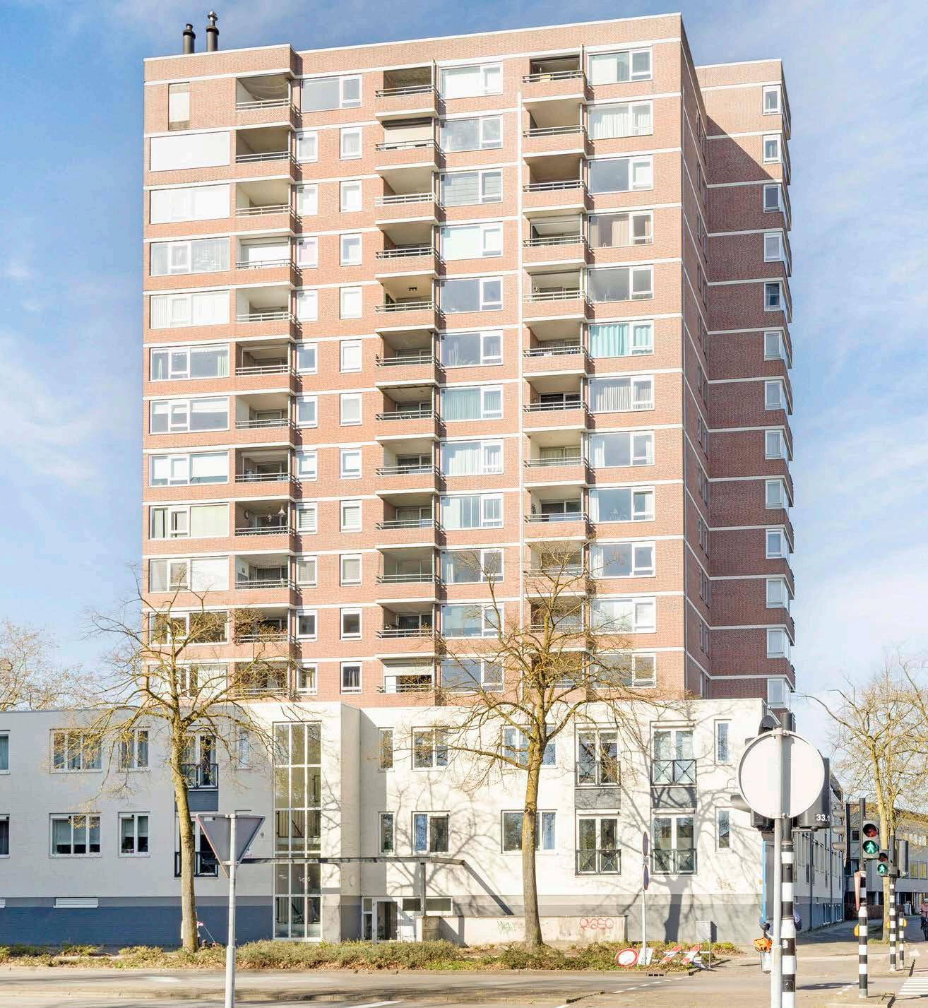 Het appartement is gelegen op de elfde verdieping van een verzorgd complex. Bij aankomst kun je de auto gratis parkeren rondom het gebouw. Via de centrale entree, voorzien van bellentableau en brievenbussen, heb je toegang tot de lift en het trappenhuis.