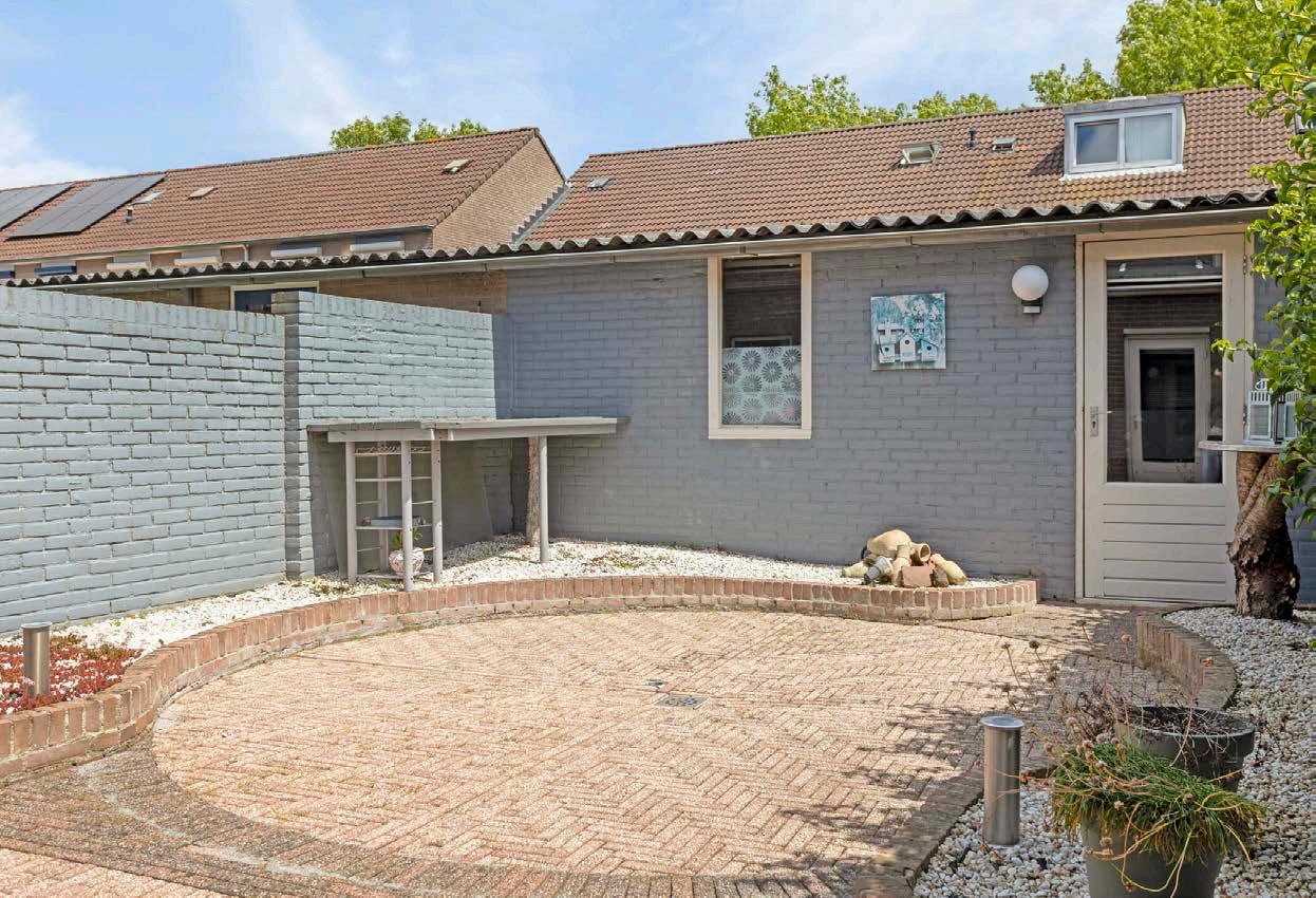 De brede voortuin en oprit bieden plaats aan twee auto’s, wat zorgt voor gemak en comfort. De voortuin geeft de woning een nette en verzorgde uitstraling, wat meteen een goede eerste indruk maakt.