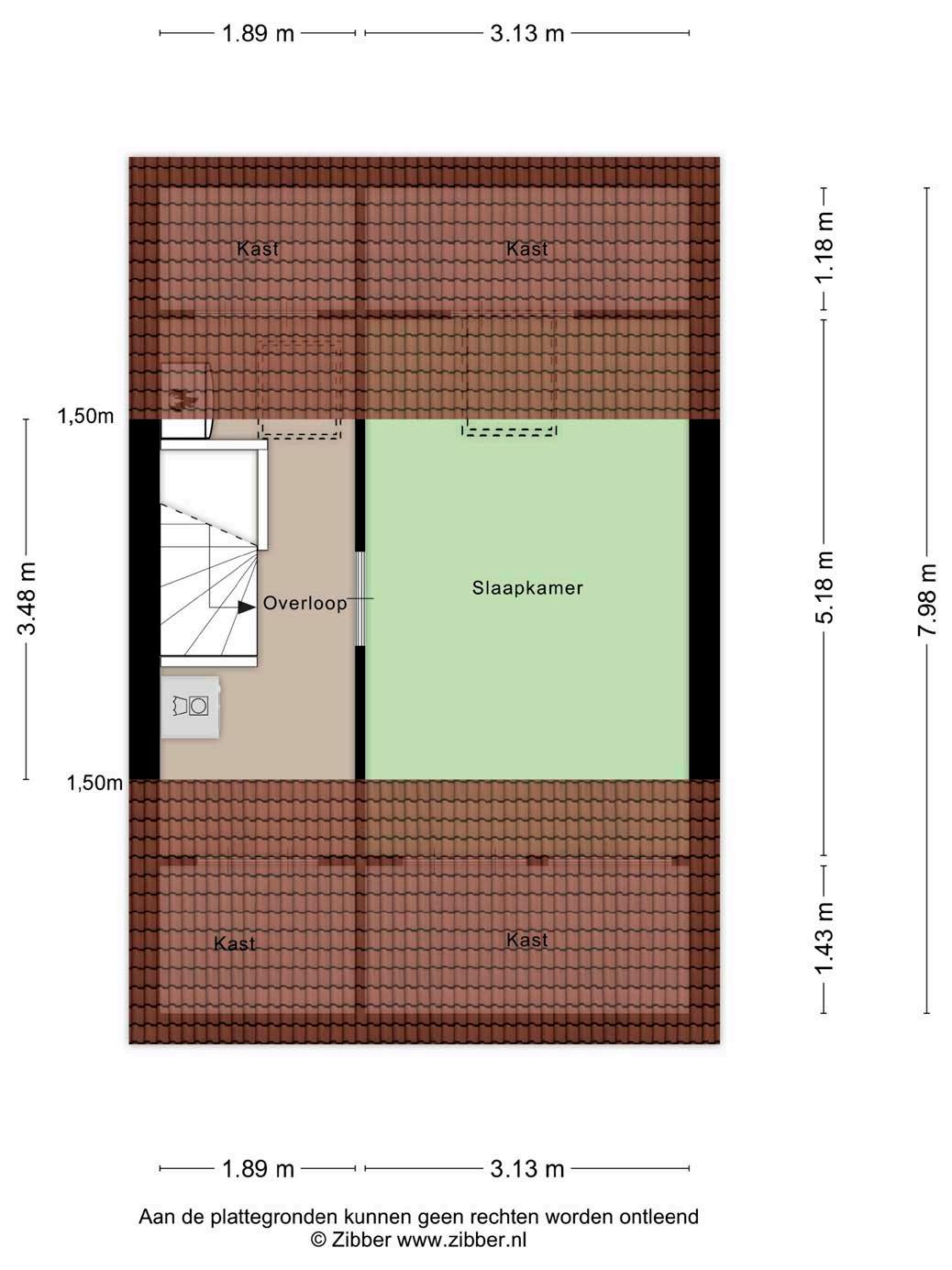 De grote zolderslaapkamer is een uniek kenmerk van het huis, gelegen onder het schuine dak. Deze kamer biedt een knusse en intieme sfeer, perfect voor een slaapkamer of een rustige leeshoek.