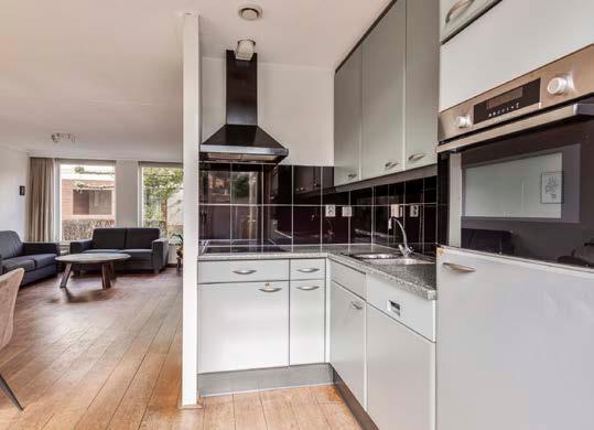 De open keuken is het middelpunt van het huiselijk leven. Met een directe blik op de tuin, biedt deze ruimte niet alleen een plek om heerlijke maaltijden te bereiden, maar ook om te genieten van het uitzicht en de interactie met familie of gasten.