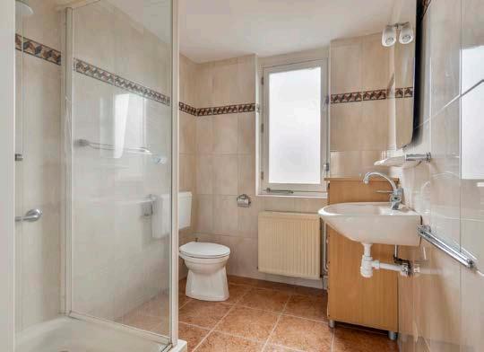 De badkamer op de eerste verdieping is een oase van rust en ontspanning. De ruimte is uitgerust met een aparte douche, toilet en wastafel met meubel.