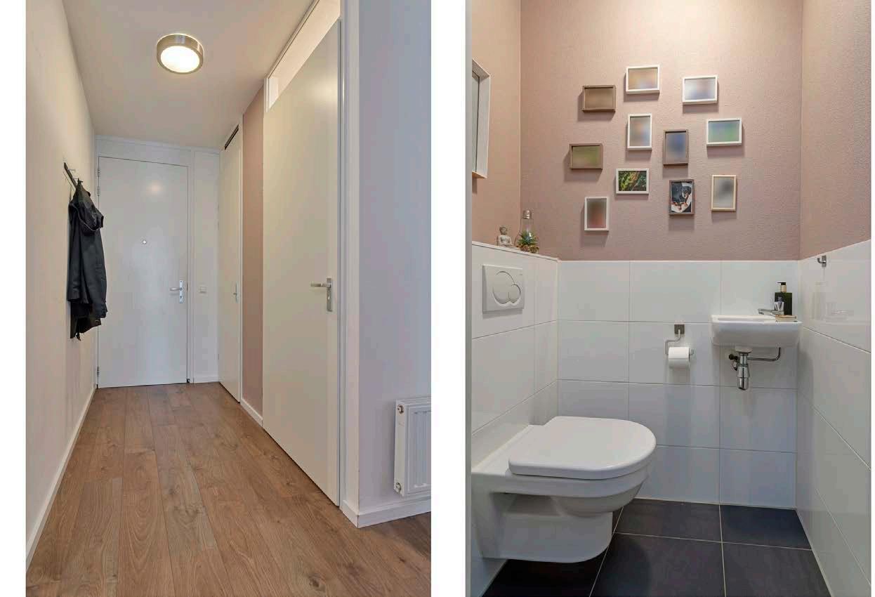 Het appartement beschikt over een ruime indeling en een goede afwerking met een laminaatvloer en lichte kleuren op de wanden. De woonkamer is goed bemeten, lekker licht en biedt de ideale basis om met verschillende interieurstijlen aan de slag te gaan. Wat voor comfortabele zit-en eethoek ga jij hier plaatsen?