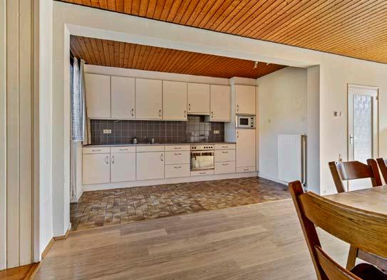 De keuken, bereikbaar vanuit de woonkamer, is geplaatst in een handige wandopstelling. Hier kun je jouw culinaire creativiteit de vrije loop laten terwijl je uitkijkt op je eigen tuin