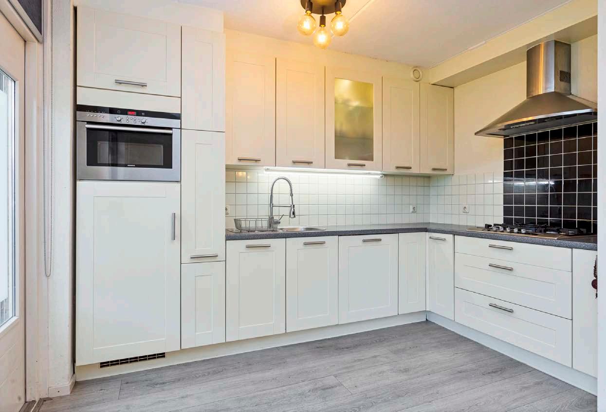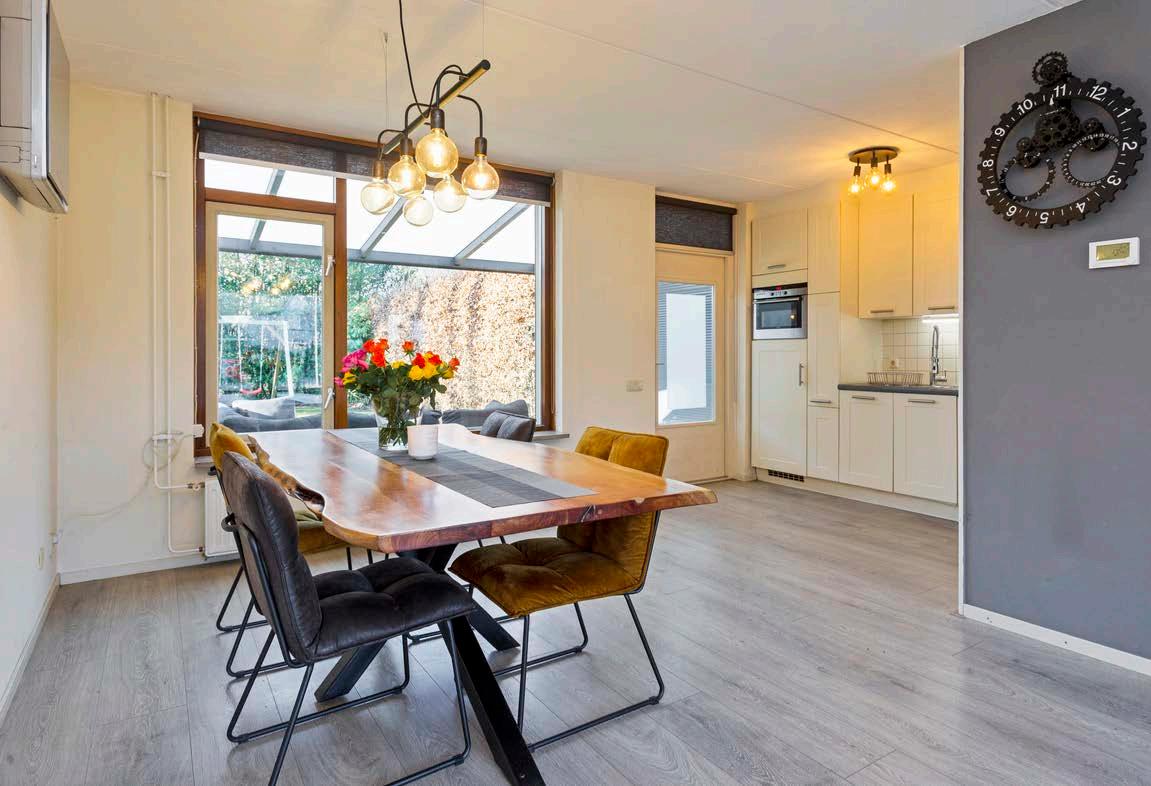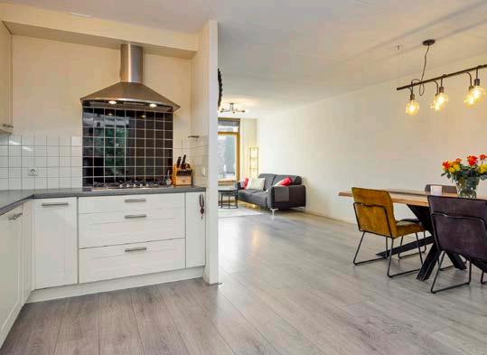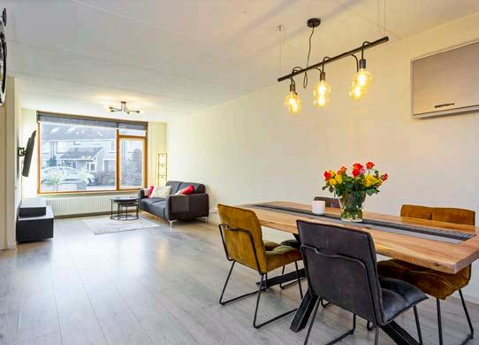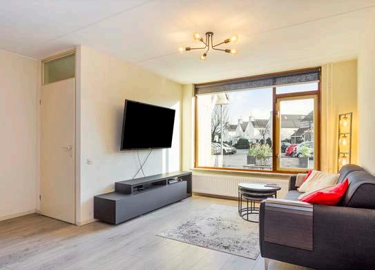 Loop je verder de gang in, dan kom je uit in de gezellige woonkamer. Met een royale oppervlakte van circa 37 m2 is dit een heerlijke plek om te ontspannen. Bovendien is de ruimte heerlijk licht dankzij de grote ramen aan de voor- en achterzijde. De woonkamer is voorzien van een praktische trapkast en een airco die zorgt voor koeling en verwarming. Het geheel is netjes afgewerkt met een laminaatvloer en wanden in lichte kleuren.