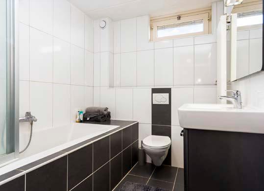 Deze woning beschikt over een nette, geheel betegelde badkamer waar je compleet tot rust kunt komen na een lange dag. De badkamer is voorzien van een ligbad met douche, een wastafelmeubel en een hangend toilet.