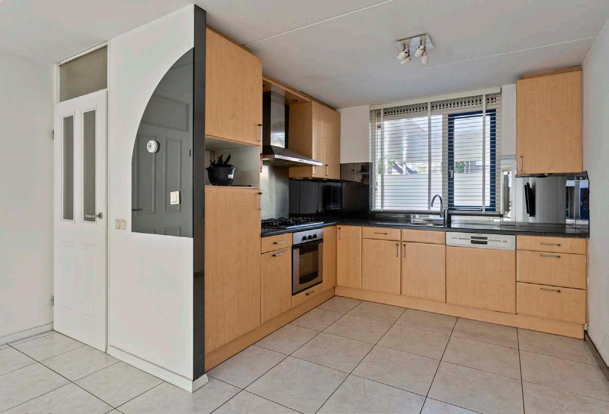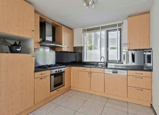 De keuken is uitgerust met inbouwapparatuur, waaronder een oven en een vaatwasser.