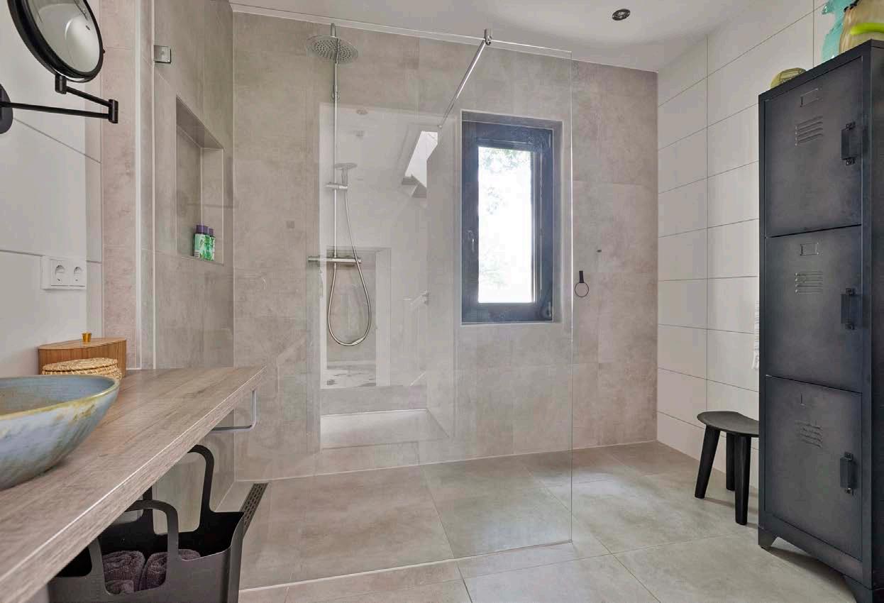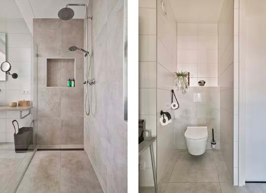 Deze moderne badkamer is ontworpen om je dag te starten of af te sluiten in stijl. Met een wastafelmeubel, een toilet en een ruime inloopdouche, is dit de perfecte plek om te ontspannen na een lange dag. De ruimte is praktisch ingedeeld en biedt voldoende opbergruimte voor al je badkamerspullen.