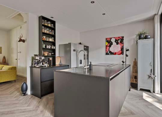De moderne open keuken is een waar genot voor iedere kookliefhebber. Uitgerust met de nieuwste apparatuur, waaronder een 5-pits inductiekookplaat met geïntegreerde afzuigkap, combi-oven en stoomoven, biedt deze keuken alles wat je nodig hebt om culinaire gerechten te bereiden. Het composieten aanrechtblad en het kookeiland geven een luxe uitstraling. Daarnaast is de keuken voorzien van een Franke kokend-warmwaterkraan, waardoor je altijd direct kokend water bij de hand hebt.