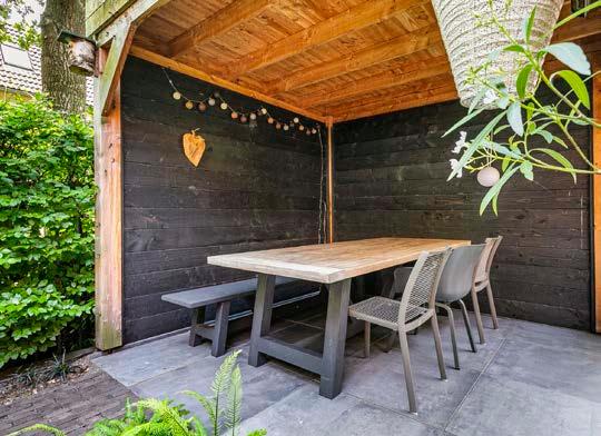 De zonnige tuin met overkapping biedt een heerlijke plek om het hele jaar door van het buitenleven te genieten. Of je nu wilt ontspannen met een goed boek, een barbecue wilt organiseren met vrienden of gewoon de kinderen wilt laten spelen, deze tuin biedt het allemaal. Het elektrische zonnescherm zorgt ervoor dat je altijd een plekje in de schaduw hebt op warme zomerdagen. De tuin is onderhoudsvriendelijk aangelegd, zodat je meer tijd hebt om te genieten en minder tijd kwijt bent aan onderhoud.
