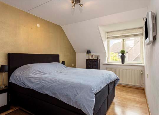 Met een vaste trap bereik je de tweede verdieping, waar je een ruime slaapkamer vindt met dakkapel en wastafel, evenals extra bergruimte en de cvketel.