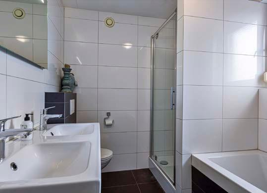 De badkamer is in 2013 geheel vernieuwd en beschikt over een douche, ligbad, dubbele wastafel en toilet.
