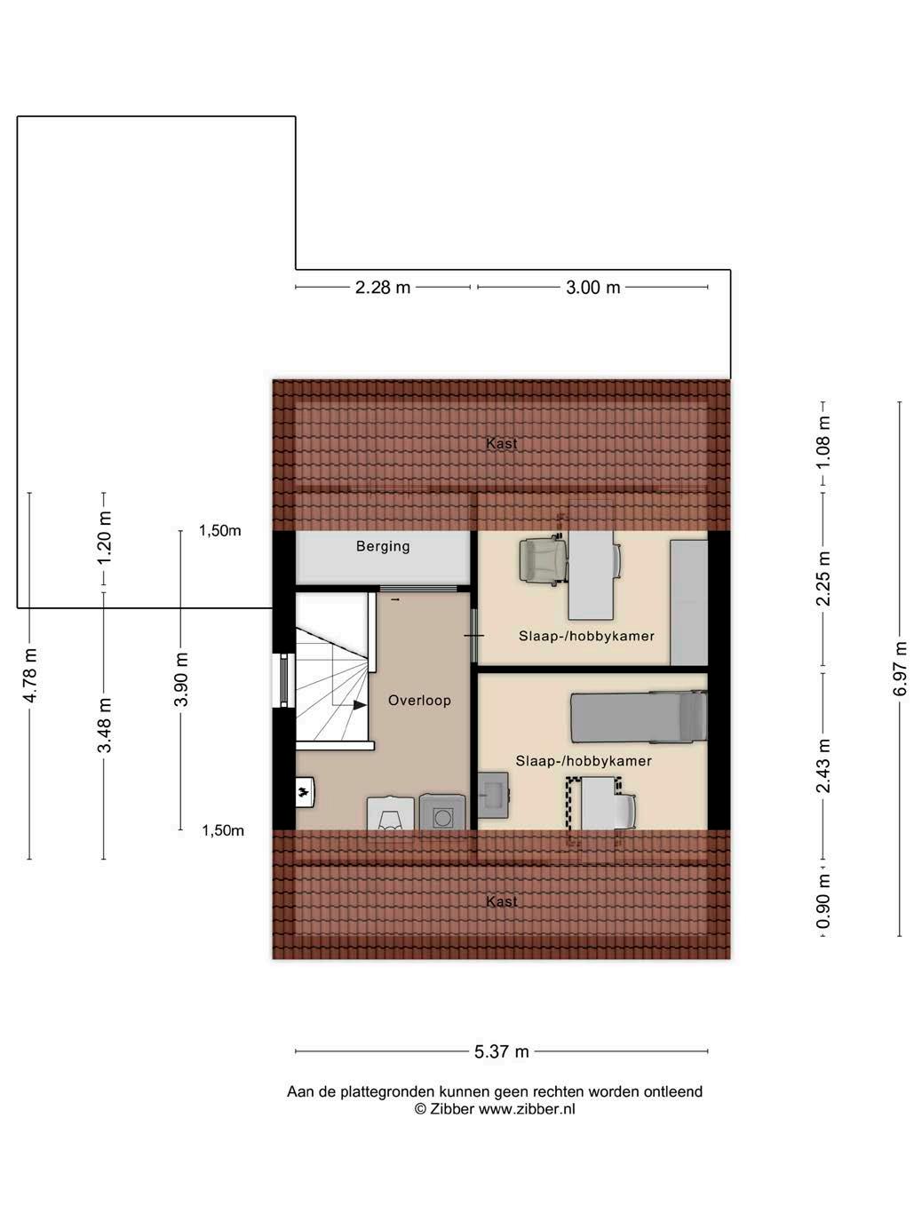 Vijf slaapkamers: Verdeeld over de eerste- en tweede verdieping, voor iedereen een heerlijke plek. De ruime slaapkamers zorgen ervoor dat iedereen zijn eigen plek heeft, en de extra (slaap)kamer boven de garage kan ook met gemak dienen als speelkamer of thuiskantoor. Praktisch gezien is er ook aan alles gedacht: de voorzolder biedt een handige opstelplaats voor de wasapparatuur en de cv-ketel (huur).