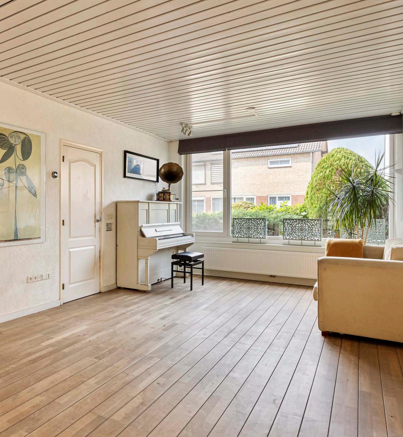 De woonkamer is een waar hoogtepunt: ruim, licht en voorzien van grote ramen die een overvloed aan natuurlijk licht binnenlaten. Stel je voor dat je hier met je gezin geniet van een filmavond, terwijl de zon langzaam ondergaat en de kamer baadt in een warme gloed.