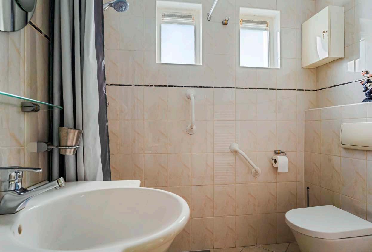 De levensloopbestendige indeling betekent dat alle essentiële voorzieningen zich op de begane grond bevinden. De badkamer is uitgerust met inloopdouche, toilet, spiegel en wastafel.