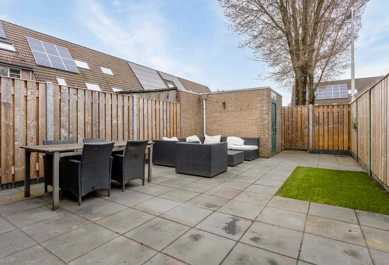 De achtertuin is een verlengstuk van de woonruimte en biedt een heerlijke plek om te ontspannen, te spelen of te tuinieren. De tuin is diep genoeg voor een terras en een speelgedeelte voor de kinderen. Achterin de tuin bevindt zich een berging, ideaal voor het opbergen van fietsen, tuingereedschap en buitenspeelgoed. Opvallend is de vrije ligging van de tuin, zonder inkijk van achterburen.