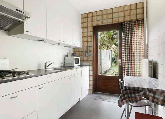 Vanuit de entree en de woonkamer heb je toegang tot de keuken. De keuken is licht afgewerkt en de vloer is voorzien van tegels. De keuken is in goede staat maar kan eventueel naar eigen smaak gemoderniseerd worden. Je zou bijvoorbeeld de muur tussen de woonkamer en de keuken eruit kunnen halen, zo kan je hier een moderne leefkeuken met gezellige eethoek creëren.
