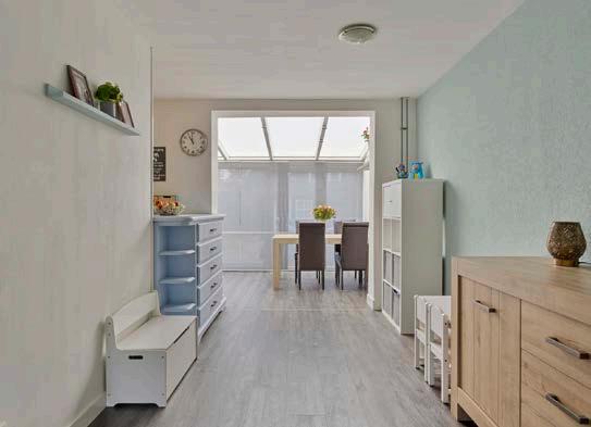 De woonkamer is het kloppend hart van het huis, een plek waar je direct de huiselijke gezelligheid voelt zodra je binnenstapt. De grote ramen laten het daglicht binnenstromen, waardoor de kamer baadt in natuurlijk licht. Dit is de plek waar je met een warm kopje thee in de hand kunt genieten van een rustig moment, of juist een feestelijke avond organiseert met vrienden.