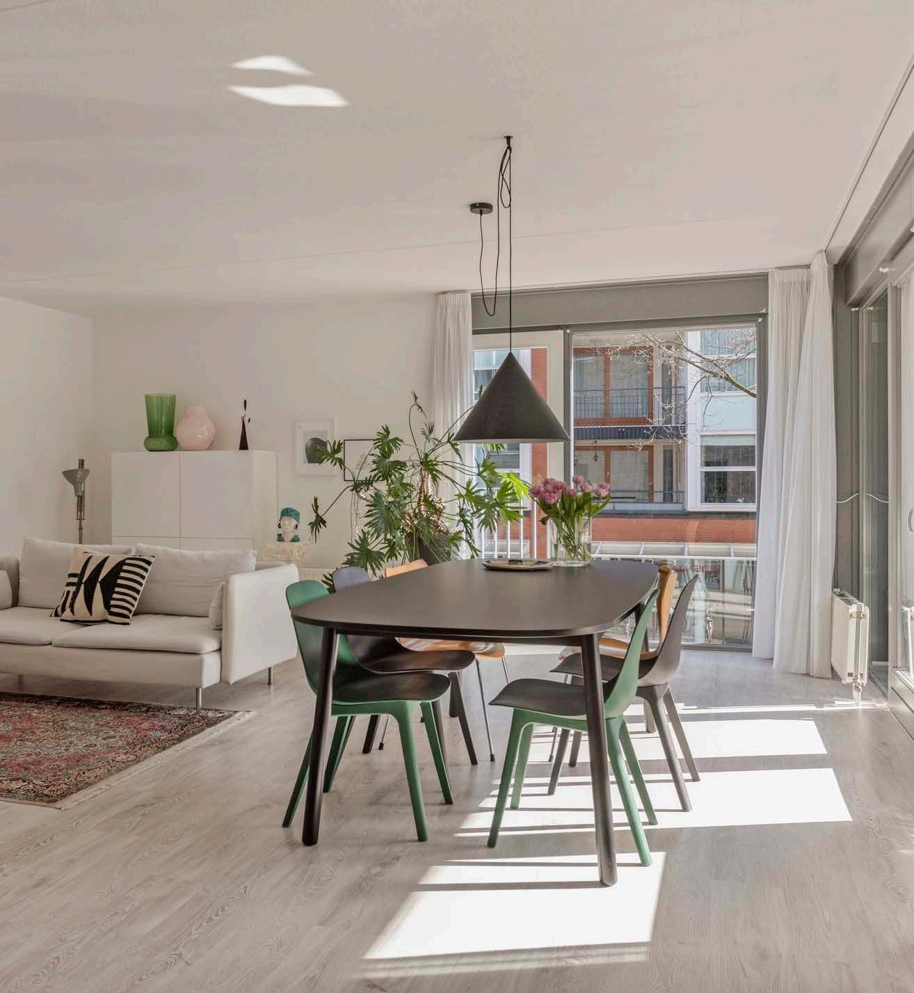Het is een comfortabel en licht appartement. De plafondhoge ramen zorgen voor veel natuurlijke lichtinval. Tijdens de zomermaanden is het inpandige balkon een waardig verlengstuk van de woonkamer.
