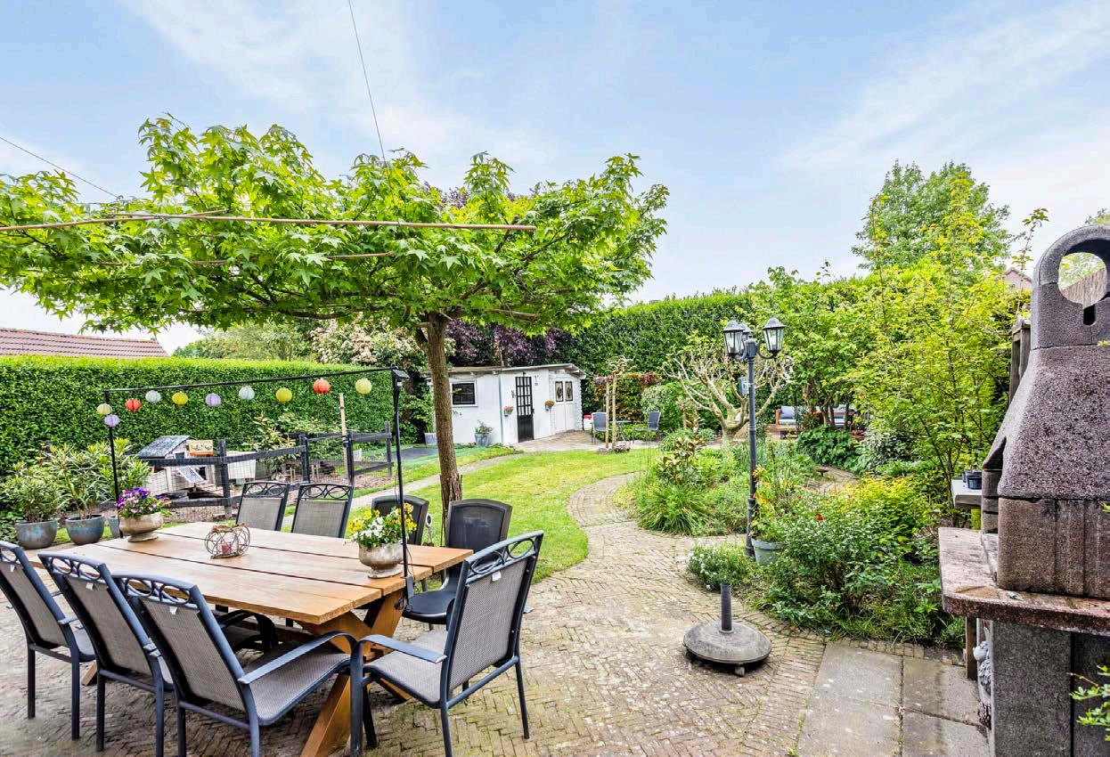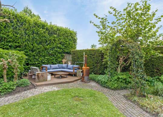 De zuidelijk gelegen tuin biedt een overkapping, meerdere zitplekken en volledige privacy. Het schaduwterras en ruime tuinhuis met fietsenstalling en extra ruimte voor hobby’s, plus meerdere stroompunten, maken deze woning compleet.