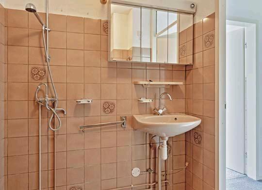 De badkamer is praktisch ingericht met een douche en een wastafel.