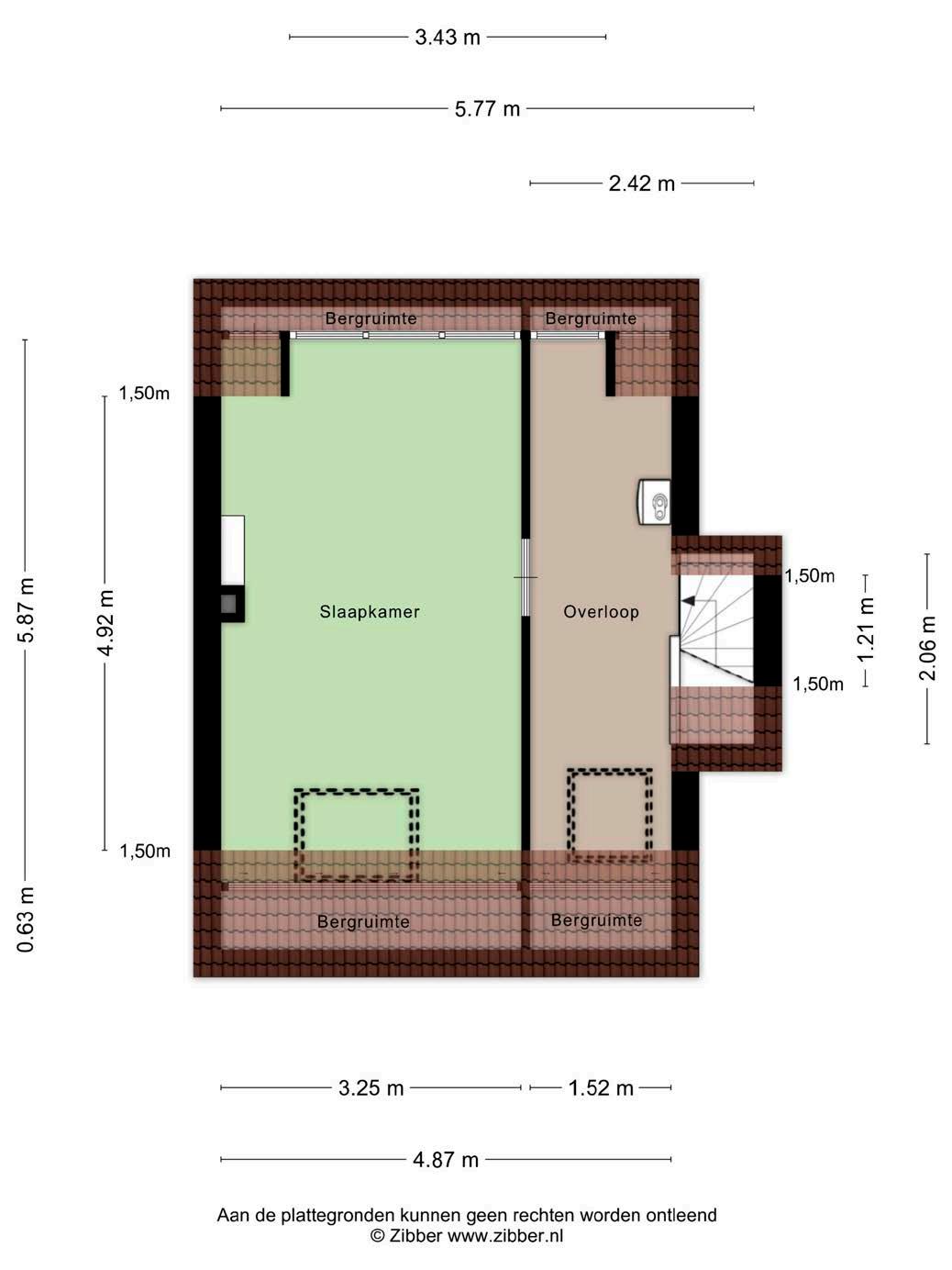 De zolderverdieping beschikt over een extra kamer met veel daglicht dankzij de dakramen. Deze ruimte is geschikt als slaapkamer, werkof hobbyruimte en beschikt over praktische bergruimte.
