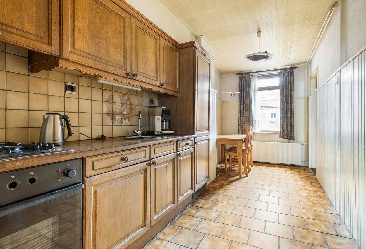 De basis van de woonkamer en keuken is degelijk en de ruimte is geheel naar eigen wens te moderniseren. De keuken is geplaatst in een rechte opstelling en heeft via een deur toegang tot de woonkamer.