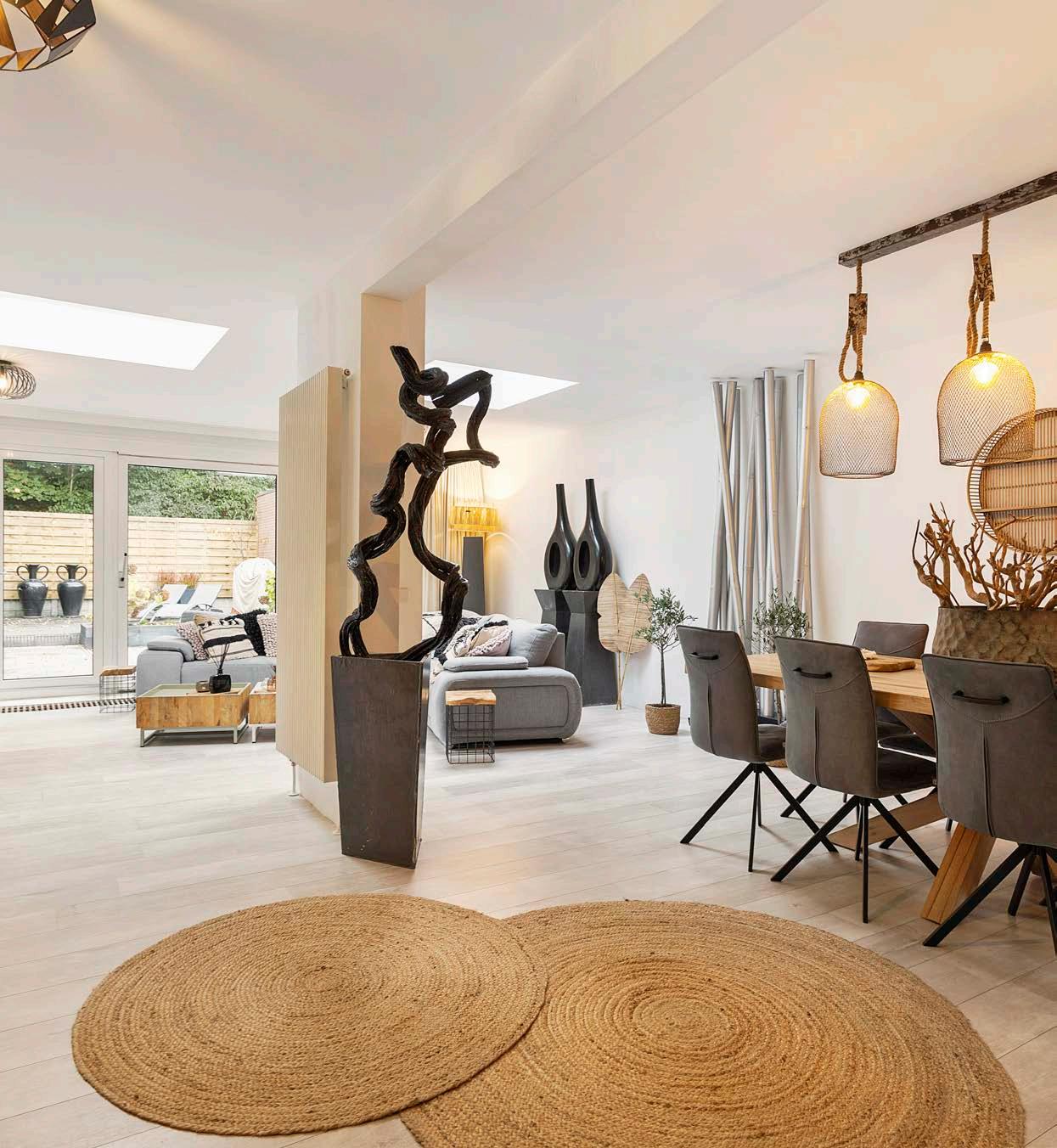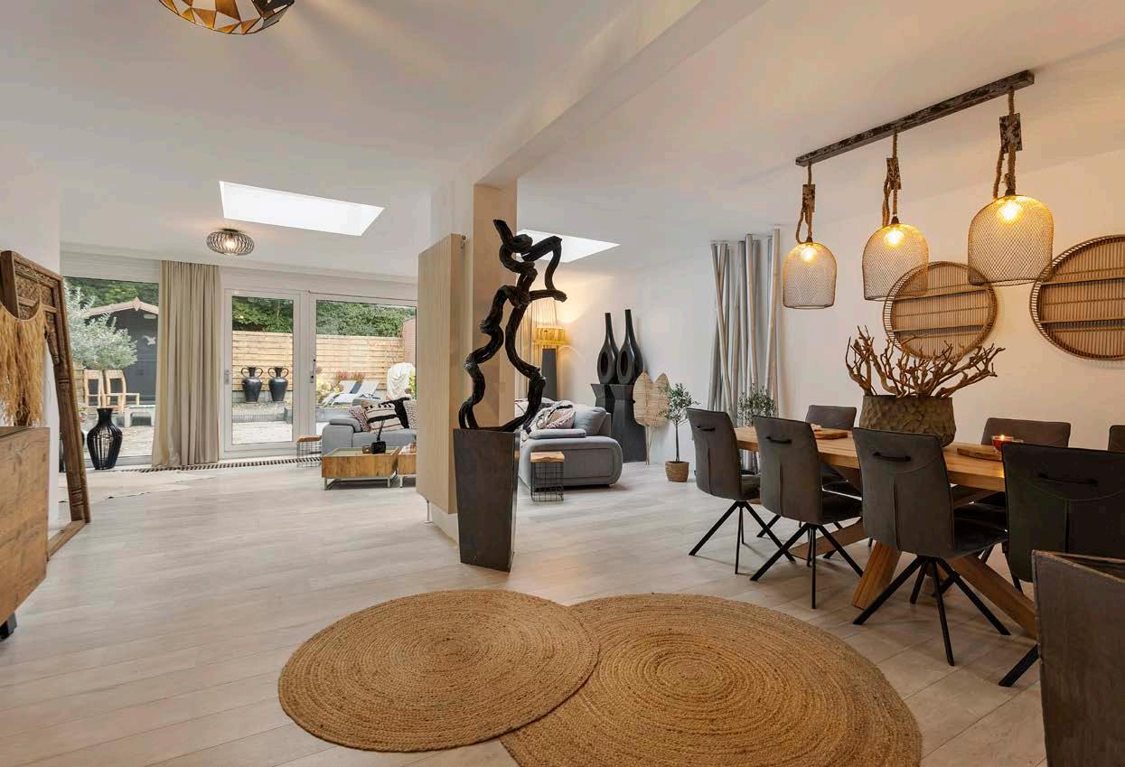 In de woonkamer heb je meer dan voldoende ruimte voor een grote, comfortabele zithoek waar je je terug kunt trekken om helemaal te ontspannen. Daarnaast is er nog genoeg plek voor een gezellige eethoek.